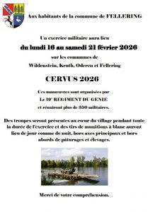 Un exercice militaire aura lieu du lundi 16 au samedi 21 février 2026 sur les communes de Wildenstein, Kruth, Oderen et Fellering.